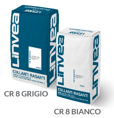 Adesivo-rasante minerale fibrorinforzato, disponibile nei colori grigio e bianco, formulato con leganti idraulici modificati, inerti selezionati e additivi specifici. Granulometria nominale ≤ 0,8 mm. CR 8 è indicato per l’utilizzo come adesivo e rasante nei sistemi di isolamento termico a cappotto ETICS in EPS, lana minerale, poliuretano, resina fenolica, ecc. e per la rasatura armata di intonaci, calcestruzzo e rivestimenti plastici. Il Prodotto è marcato CE conforme alla Norma Europea UNI EN 998-1.