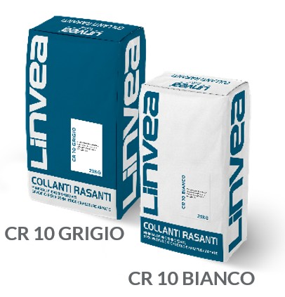 Adesivo-rasante minerale fibrorinforzato, disponibile nei colori grigio e bianco, formulato con leganti idraulici modificati, inerti selezionati e additivi specifici. Granulometria nominale ≤ 1,2 mm. CR 10 è indicato per l’utilizzo come adesivo e rasante nei sistemi di isolamento termico a cappotto ETICS in EPS, lana minerale, poliuretano, resina fenolica, ecc. e per la rasatura armata di intonaci, calcestruzzo e rivestimenti plastici. Il Prodotto è marcato CE conforme alla Norma Europea UNI EN 998-1.