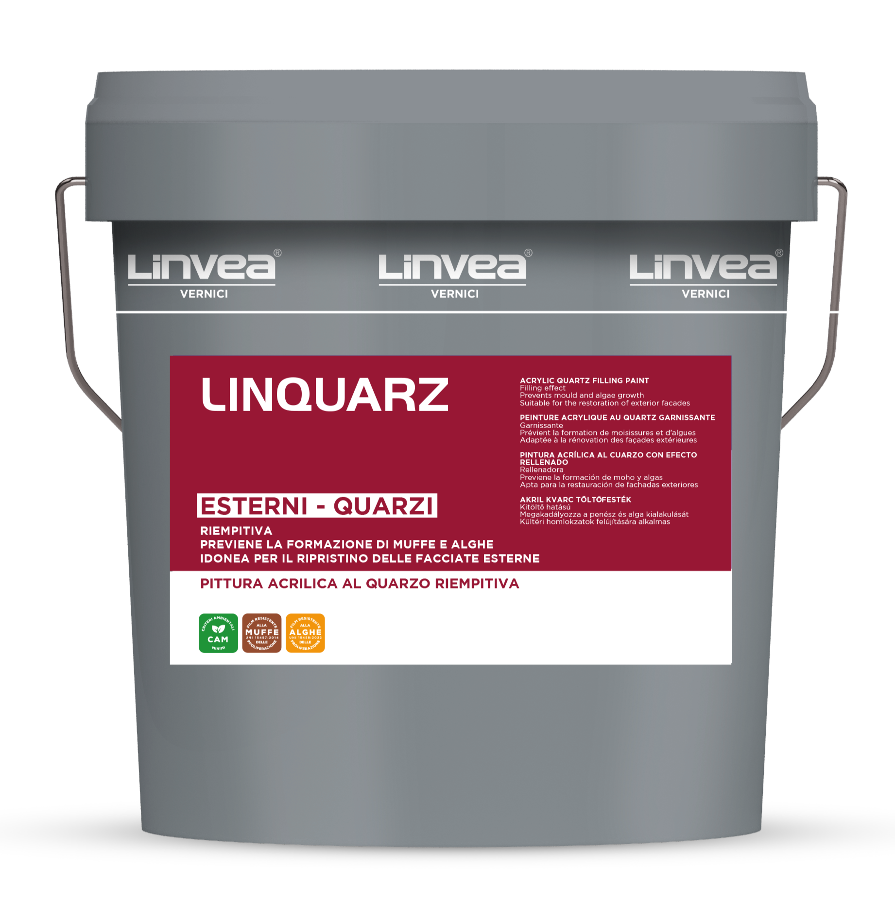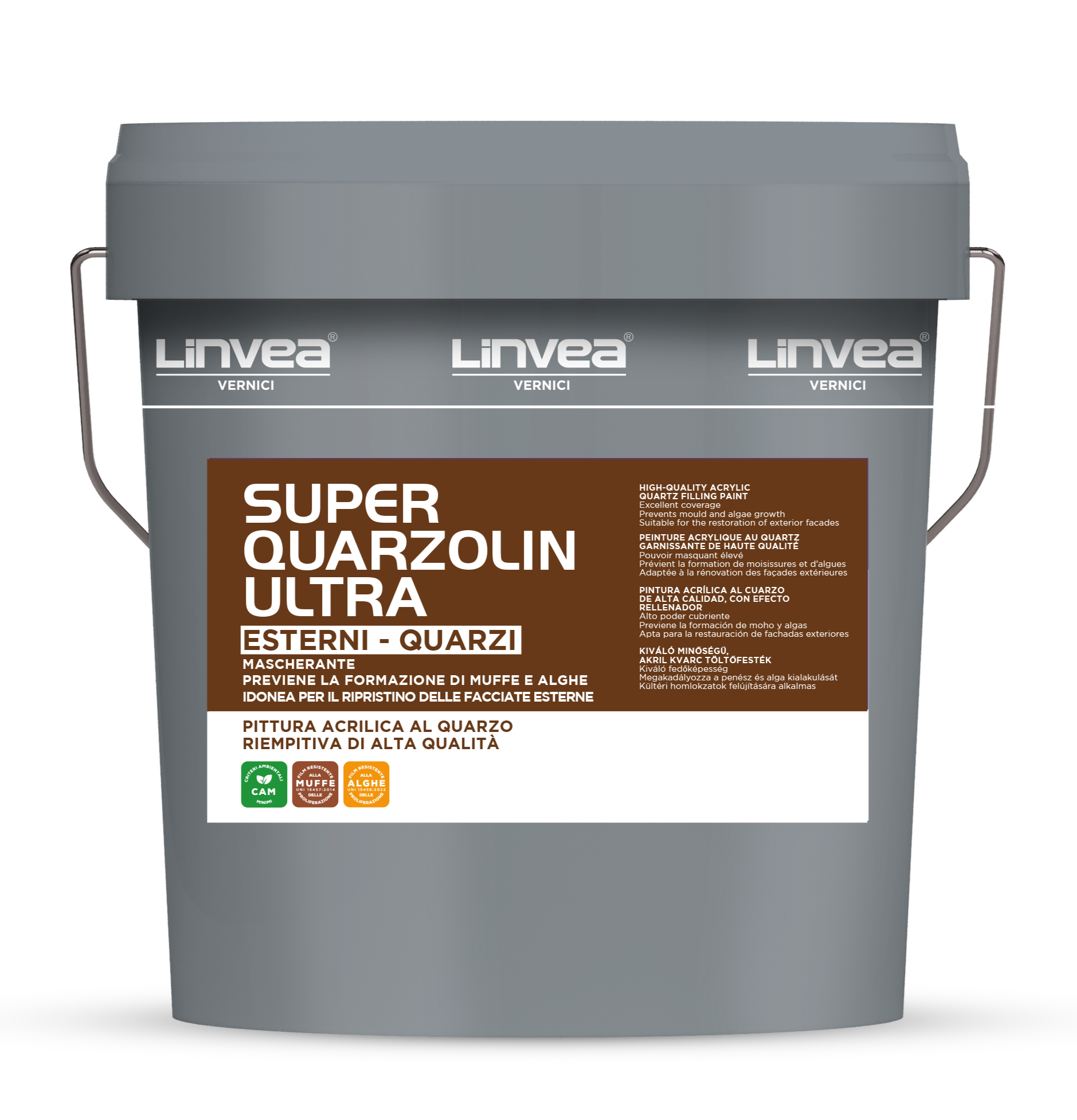 Pittura acrilica al quarzo riempitiva di alta qualità, idonea per la protezione delle superfici murali in esterno. Resistente agli agenti atmosferici e all’ambiente alcalino, tipico dei supporti cementizi ed in genere degli intonaci. Previene la formazione di muffe ed alghe secondo le norme UNI EN 15457 e UNI EN 15458. Specifica per il Green Public Procurement, DM 24/11/2025 CAM Edilizia.